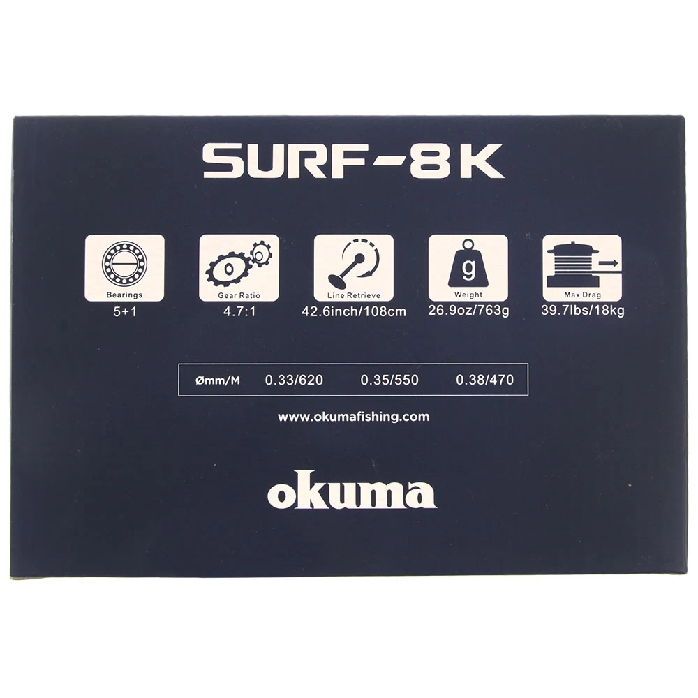 Okuma Surf 8k Spinning Surf Reel Specifications: