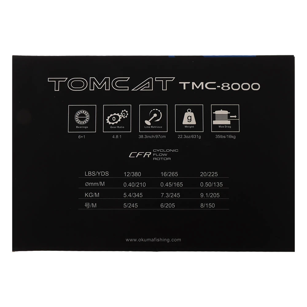 Okuma Tomcat 8000 Spinning Reel Specifications: